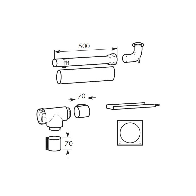 - trójnika rewizyjnego 80/125mm do wyboru trybu pracy z poborem powietrza, z pomieszczenia lub niezaleznie od powietrza w pomieszczeniu z obejmą zaciskowa
