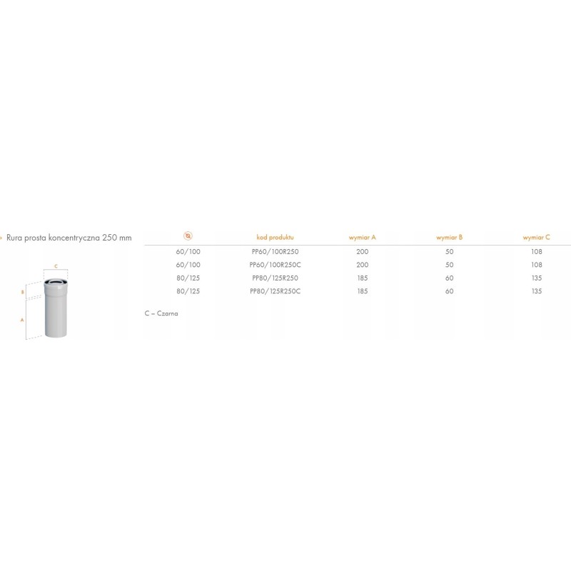 Ricom RURA PROSTA KONC PP-AL L250 DN80/125 USZCZ.
