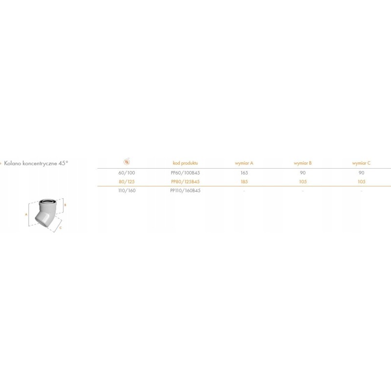 Rura spalinowa 80/125 x 45° PP-AL. RICOM PAL