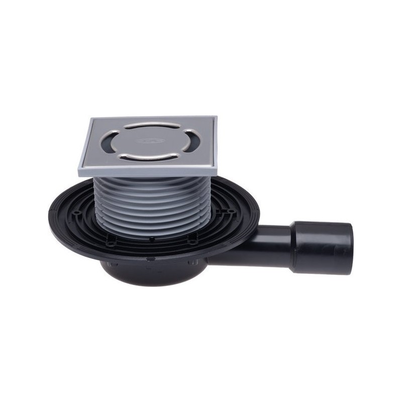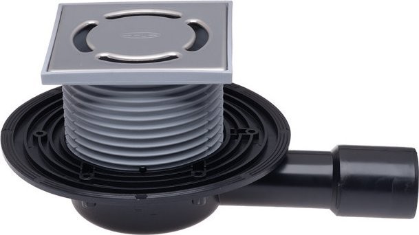 Wpust stropowy DN40/50 poziomy niski z syfonem antyzapachowym i przeciwcofkowym PrimusBlue oraz ramką z tworzywa i rusztem nierdzewnym