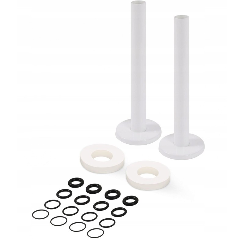 Zestaw maskujący został zaprojektowany do zakrywania połączeń zaworów o większej odległości niż 55 mm na osi środkowej, co czyni go idealnym wyborem dla grzejników dekoracyjnych. Dzięki temu możesz cieszyć się nie tylko funkcjonalnością, ale także estetyką swojego wnętrza.