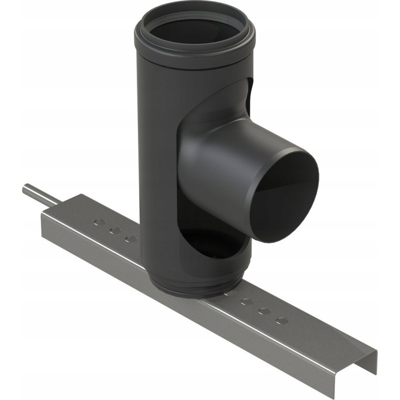 Łokieć spalinowy DN60 87° Almeva STARR PBTU05 ze stopą z kotwieniem czarne