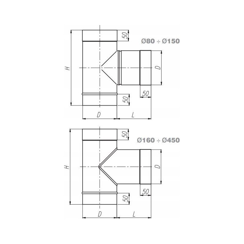 Rodzaj połączenia: kielichowe 50 mm
