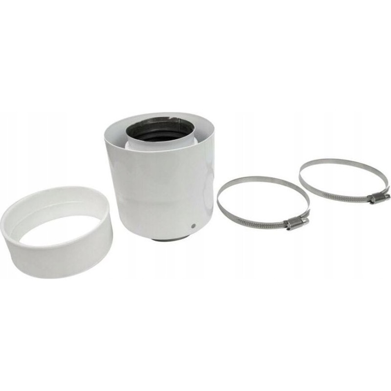 Adapter spalinowo-powietrzny do czopucha kotła Ariston. Średnica rury spalinowej 60mm, średnica rury powietrznej 100mm, w kolorze białym. Pasuje do kotła Ariston typu; Genius, Clas, Egis. W skład zestawu wchodzi; adapter przejściowy 60/100mm, uszczelka gumowa na rurę powietrzną, dwie opaski zaciskowe - ślimakowe, uszczelka silikonowa 60mm.