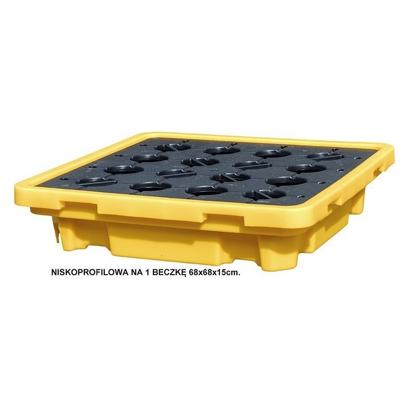 Plastikowa wanna wychwytowa o wymiarach 68×68 cm może pomieścić maksymalnie cztery 25-litrowe kanistry lub jedną beczkę o pojemności 200 litrów.