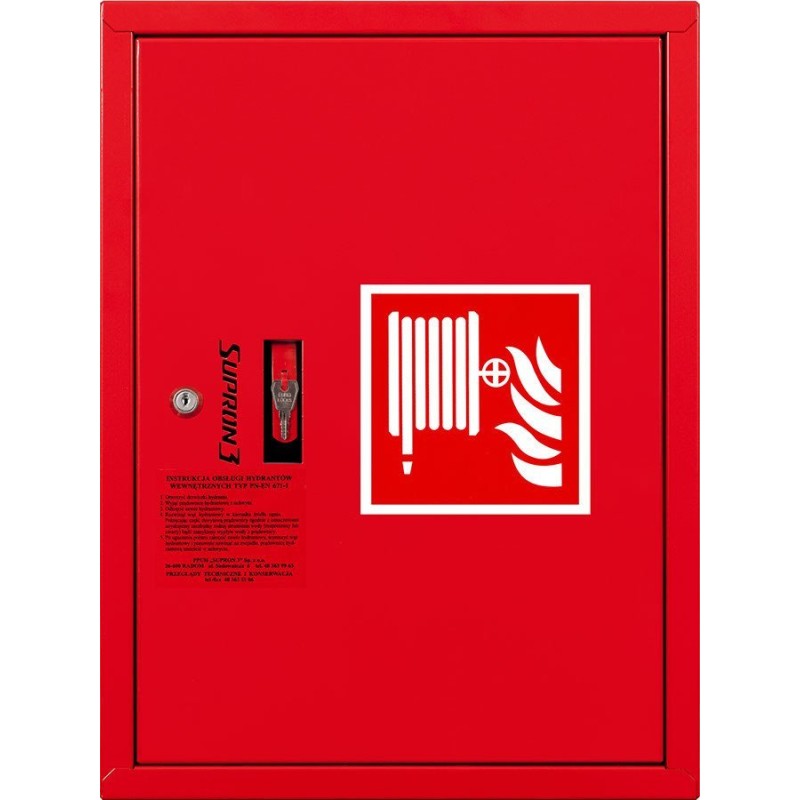 Fire hydrant l Hanging DN52 hydrant cabinet with 20m hose, patent lock RAL3000