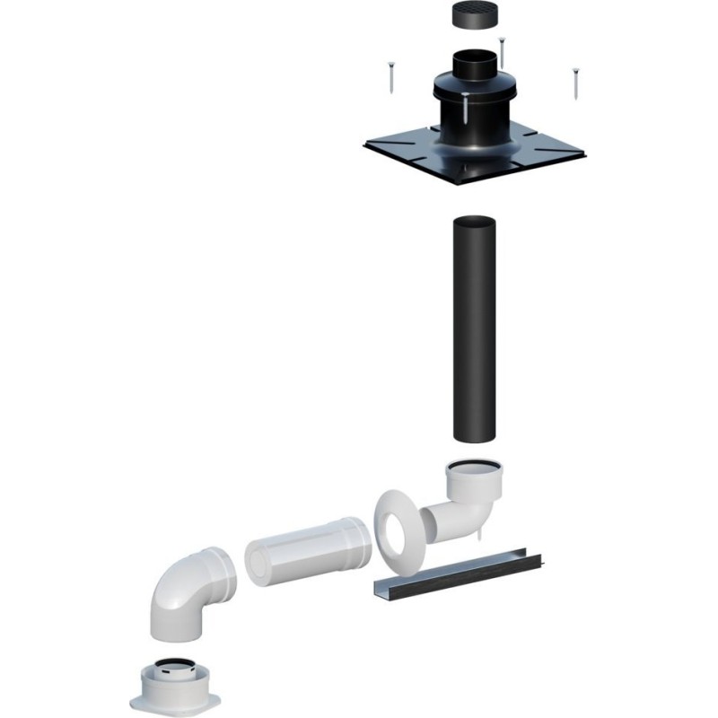 Zestaw zawiera: Adapter Immergas, kolano koncentryczne 87° PP-PP DN 60/100, rura koncentryczna 250mm DN 60/100, rozeta DN100, kolano redukcyjne DN60/80 87° z podporą, rura UV 500mm DN80, płyta dachowa PP DN 80, deflektor, śruby oraz kołki rozporowe