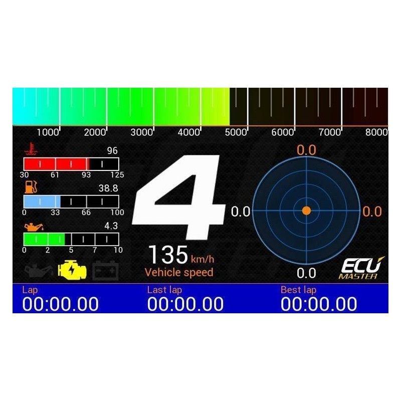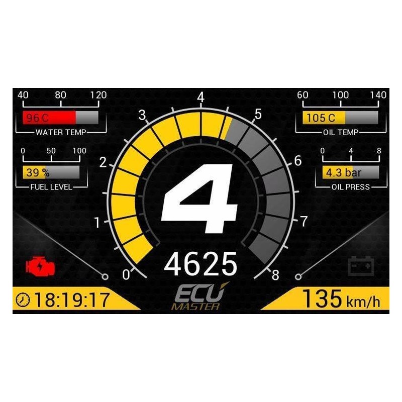 Wyświetlacz Ecumaster ADU fabrycznie posiada kilka skonfigurowanych stron, z czego każda z nich może być dowolnie modyfikowana przez użytkownika.
