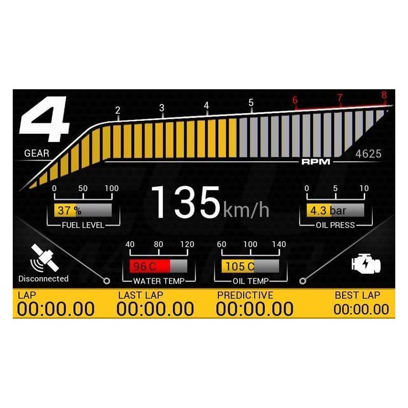 Rozbudowany system nakładek umożliwia wyświetlanie ważnych komunikatów takich jak np. niskie ciśnienie oleju czy najlepszy czas okrążenia niezależnie od wyświetlanego aktualnie ekranu.