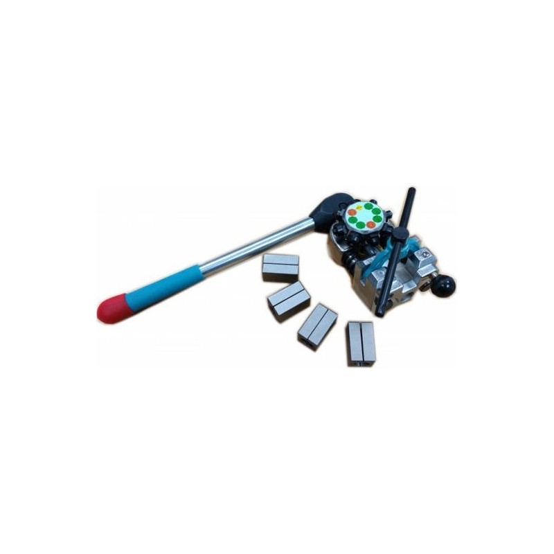 Wymagająca zamocowania w imadle. Praska do pojedynczego i podwójnego spęczania ( umożliwia wykonanie zarówno zakucia na grzybek jak i na stożek, SF oraz DF ).