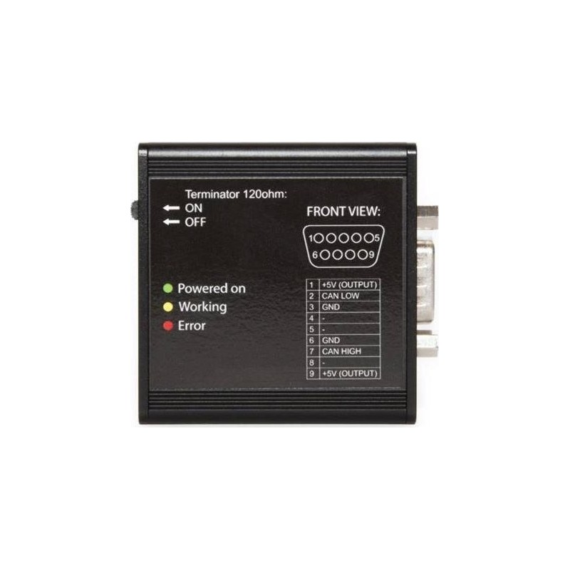 Wyposażony jest w diodę LED do szybkiej diagnostyki i terminator 120 omów, który można włączyć lub wyłączyć, aby zwolnić użytkownika z zastosowania zewnętrznych terminatorów.