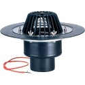 Wpust dachowy grawitacyjny DN110 pionowy, ogrzewany na 230V, z koszem na liście i stalowym pierścieniem skręcanym