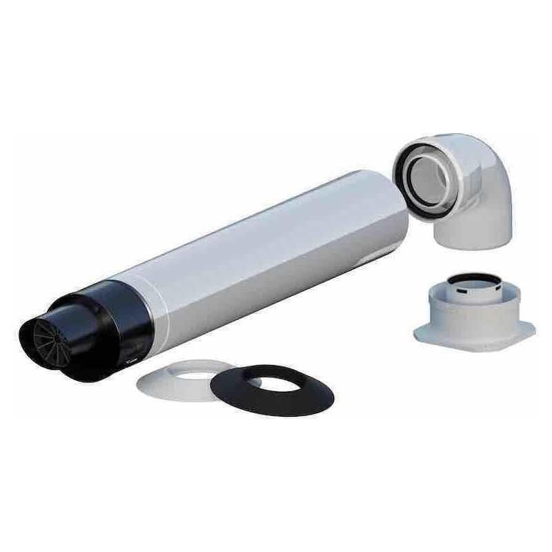 Zestaw zawiera: Adapter Immergas, kolano koncentryczne 87° PP-AL DN60/100, wyjście poziome 855mm koncentryczne DN 60/100, dwie rozety DN100,