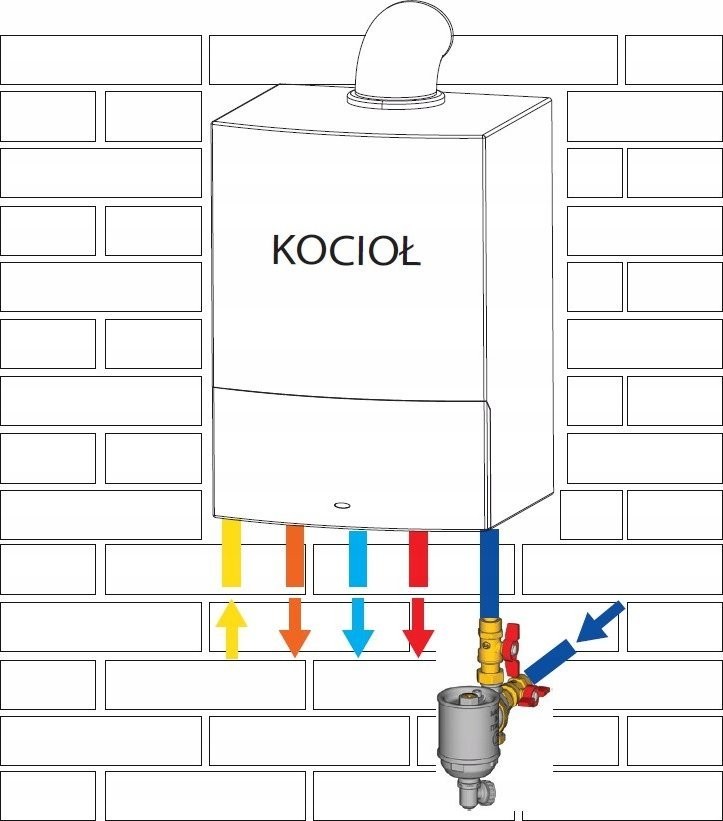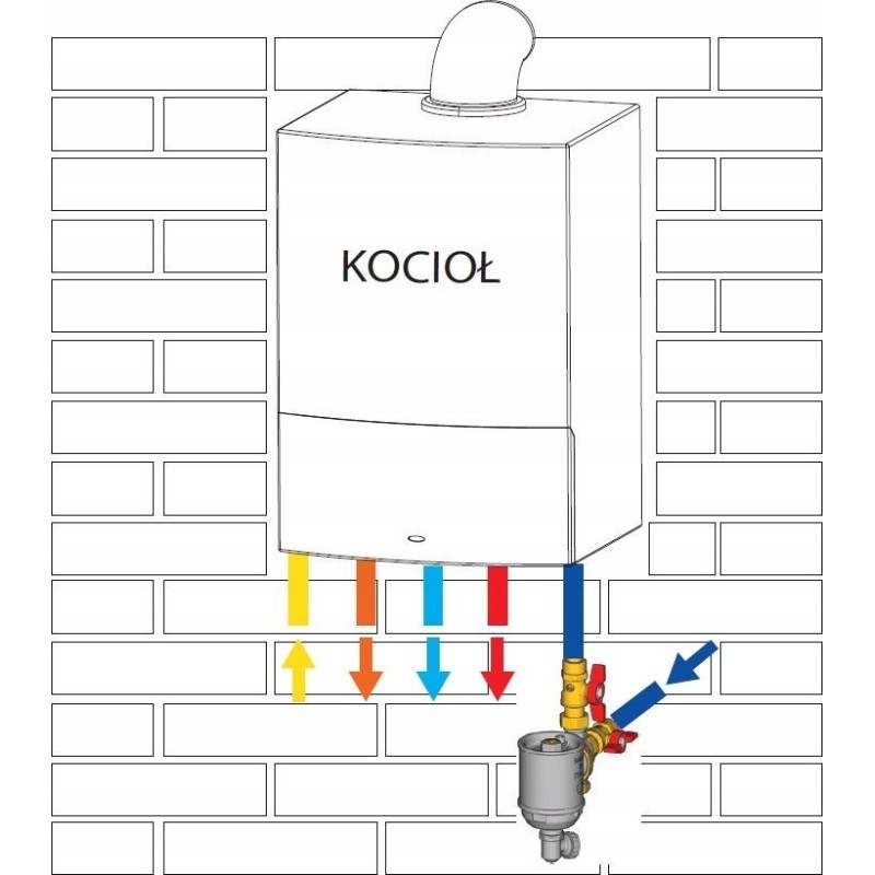▶️ Gdy zanieczyszczenia zostały usunięte, zamknąć zawór spustowy i zamontować powrotnie magnes do obudowy wkręcając go w kierunku zgodnym do ruchu wskazówek zegara. Sitko filtrujące zacznie działać normalnie