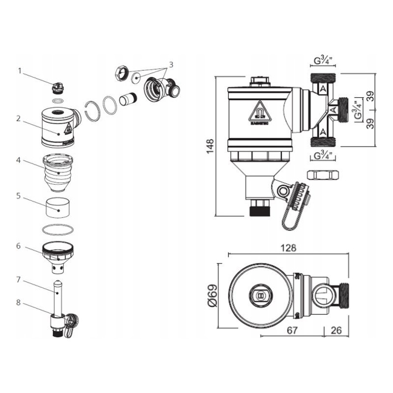 Giacomini Kompaktowy magnetyczny separator zanieczyszczeń 3/4"