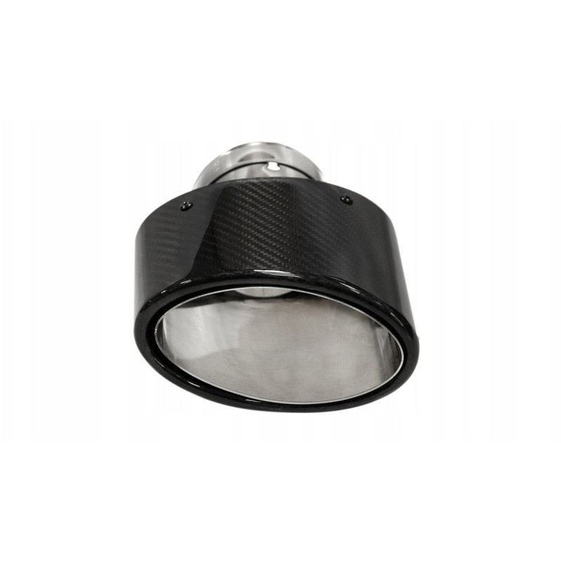 Końcówka tłumika o wymiarach 90x150 mm z wejściem 76 mm to znakomite połączenie efektywności oraz nowoczesnego designu. Wykonana z wysokiej jakości włókna węglowego, prezentuje się elegancko, a jej carbonowe wykończenie dodaje wyjątkowego charakteru każdemu pojazdowi. To idealny wybór dla tych, którzy pragną poprawić estetykę swojego samochodu, jednocześnie zwiększając jego osiągi.