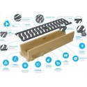 Kanały polimerobetonowe są wykonane z ulepszonej mieszanki poliestrowej, żywicy i kruszywa kwarcowego. Polimerobeton to nowoczesny materiał o wysokiej odporności mechanicznej i chemicznej.