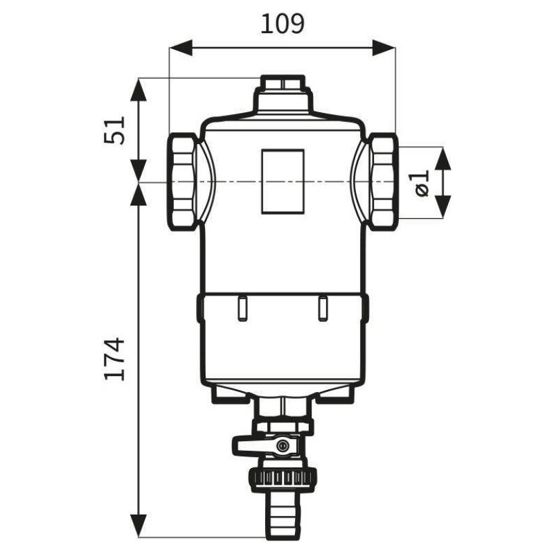 Afriso Separator zanieczyszczeń FAR 212, z magnesem i zaworem spustowym, przyłącza Rp1'', przepływ max 2,5 m3/hA