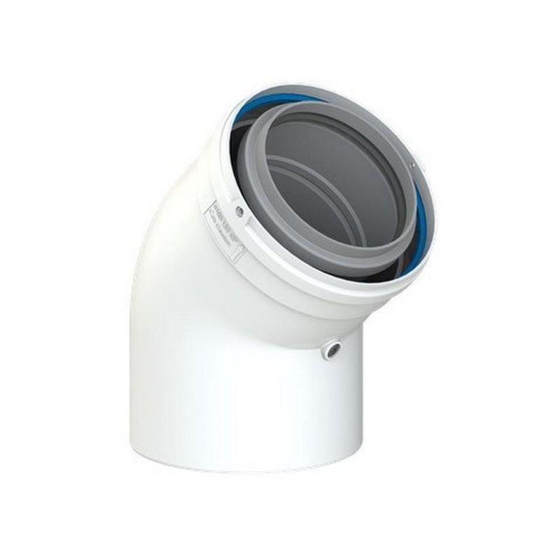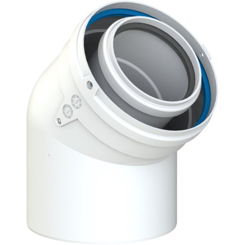 Kolano spalinowe 60/100 (PP/AL) dwuścienne białe 45 st.