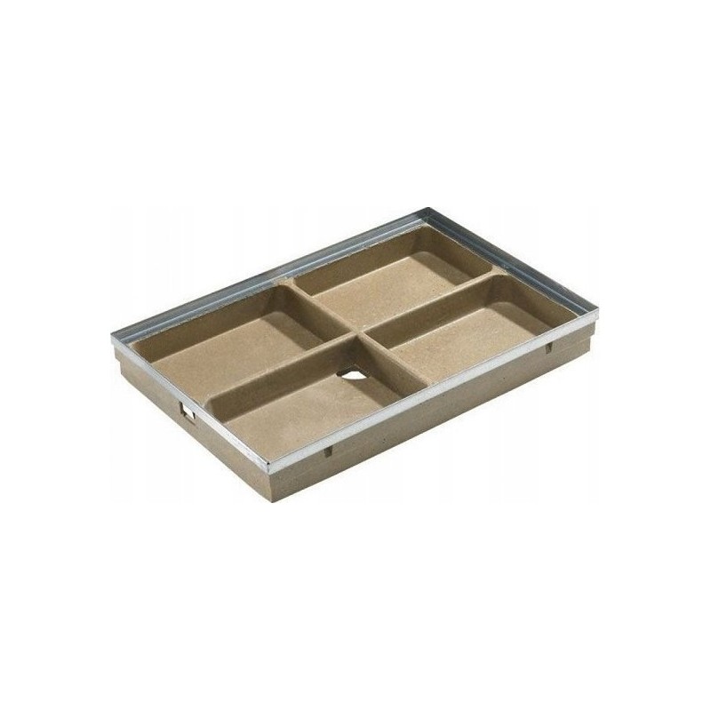 Podstawa do mat do wycieraczek systemu VARIO ACO wykonana z polimerbetonu, ze zintegrowaną krawędzią ze stali ocynkowanej, żebrami wzmacniającymi i otworem odpływowym fi 110.