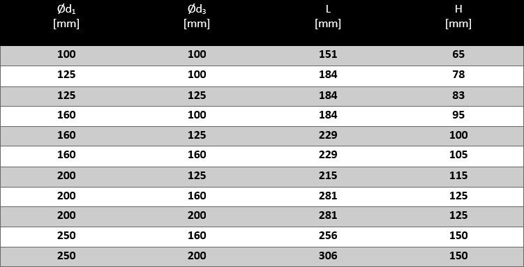 - Kąt połączenia 3 (kąt odgałęzienia) 90 °