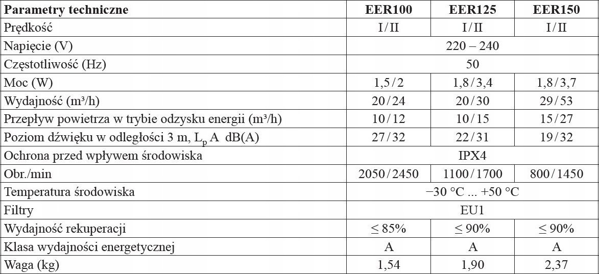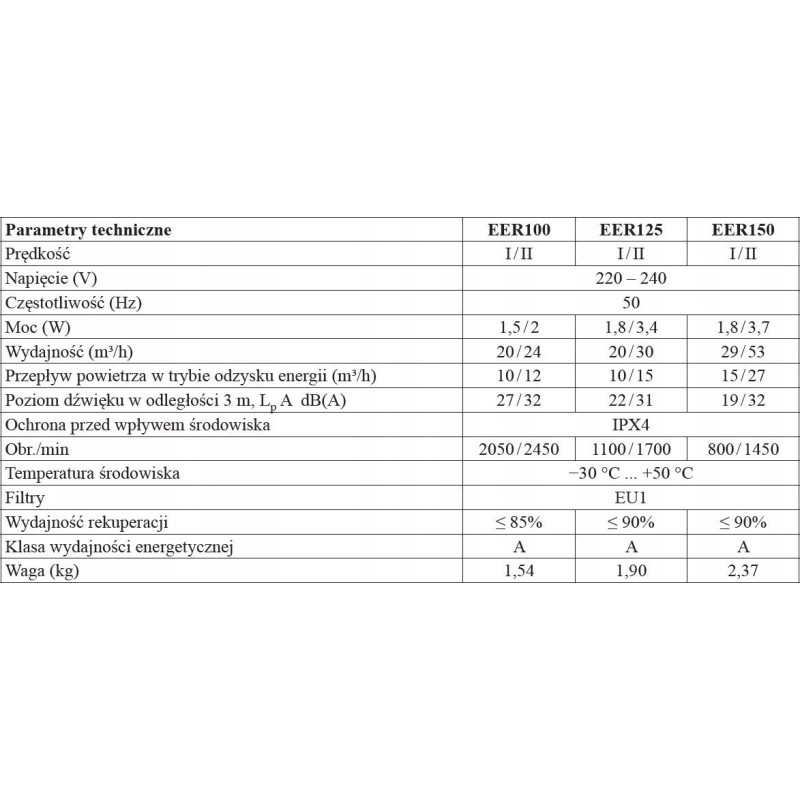 Odzyskiwacze E-Extra EER stworzone są do stałej wymiany powietrza w pomieszczeniach. Urządzenie wyposażone jest w regenerator (ceramiczny wymiennik ciepła), który przechowuje energię cieplną z powietrza opuszczającego pomieszczenie oraz podgrzewa świeże powietrze wchodzące do pomieszczenia, zapewniając minimalne straty ciepła. Urządzenie jest przeznaczone do ciągłej pracy.