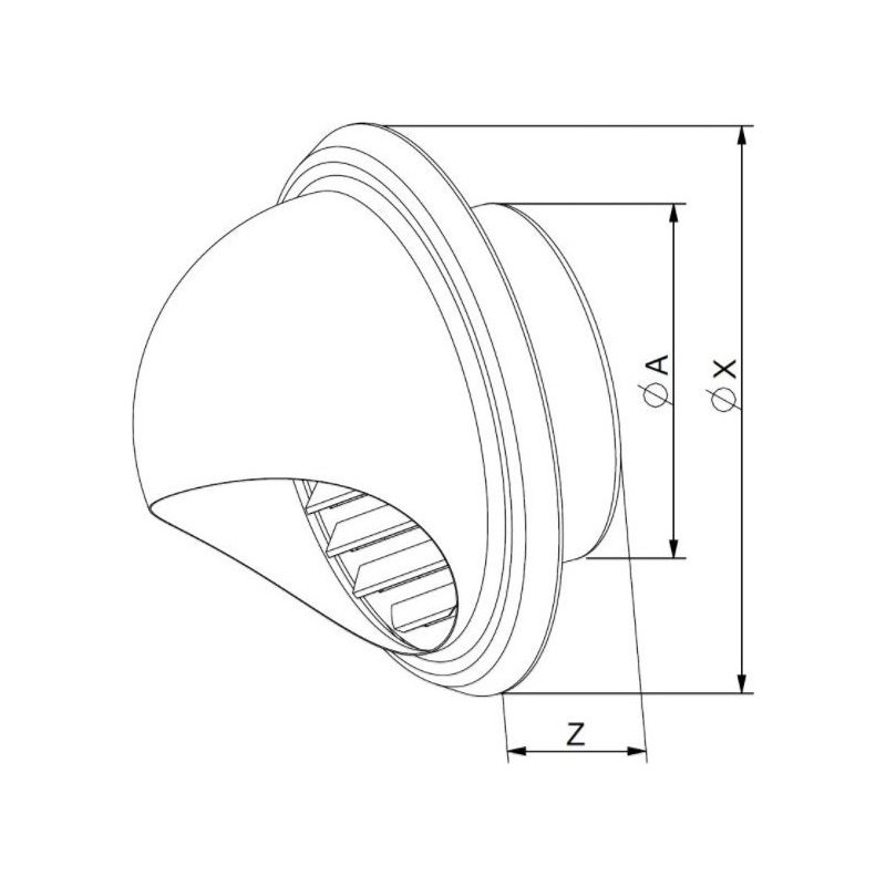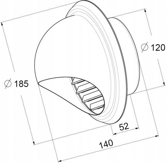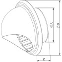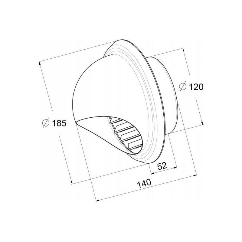 Produkt ma średnicę 125 mm, co umożliwia efektywną dystrybucję powietrza. Zakończenie wyrzutni zostało zaprojektowane z myślą o optymalnych parametrach, co przekłada się na lepszą jakość powietrza w pomieszczeniach. Dodatkowo, półkolista osłona chroni kanał wentylacyjny przed niekorzystnymi warunkami atmosferycznymi, takimi jak deszcz czy wiatr.