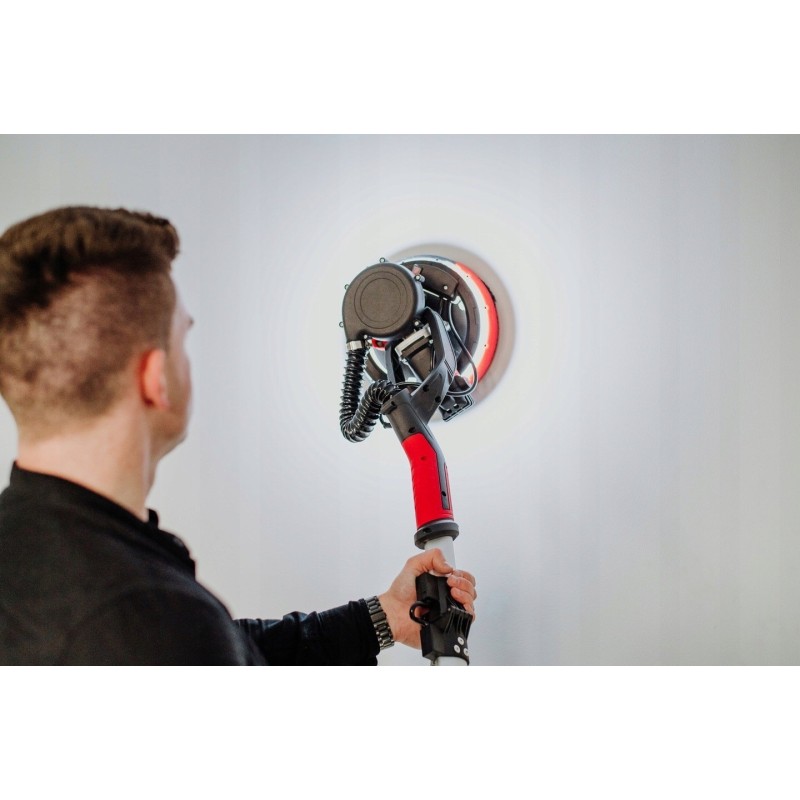 - Dzięki zastosowaniu odciągu pyłu gipsowego z powierzchni szlifującej uzyskamy szlifowanie praktycznie bez pylenia w parze z odkurzaczem i fitracją.
