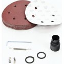 Krążki szlifierskie można szybko i łatwo przymocować do talerza szlifierskiego. Wystarczy docisnąć samoprzylepne tarcze szlifierskie do talerza szlifierskiego. Powłoka kleju utrzymuje talerz szlifierski we właściwym położeniu. Upewnij się, że otwory w tarczy szlifierskiej pokrywają się z otworami ssącymi. Zużytą tarczę szlifierską należy oderwać i gotowe.