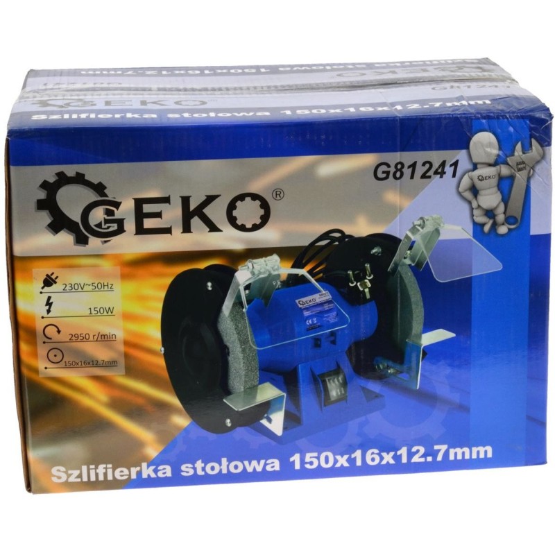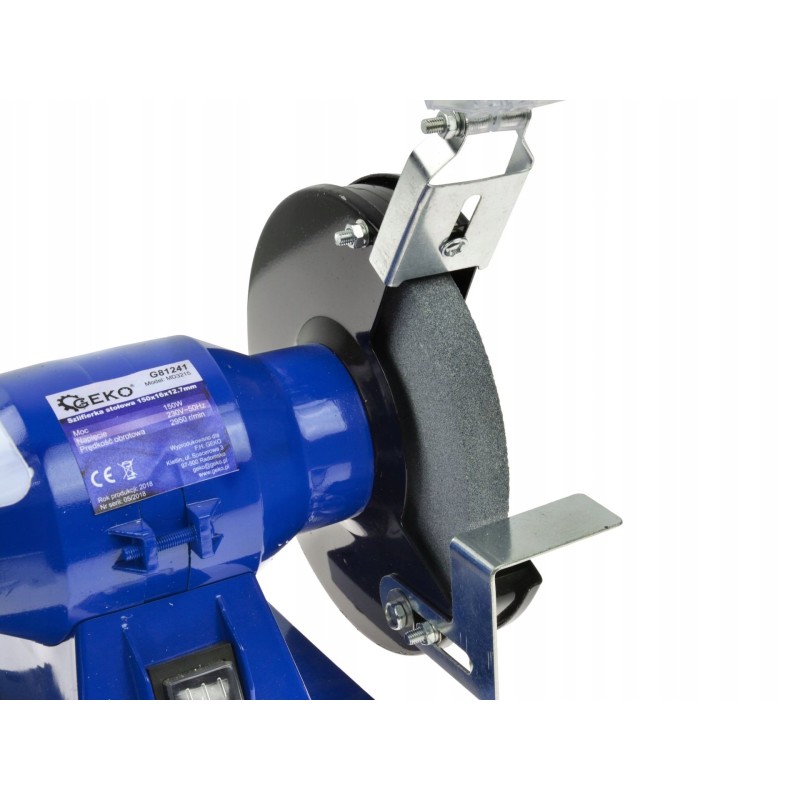 Wyposażona w silnik o mocy 150 W, szlifierka Geko G81241 gwarantuje doskonałą wydajność podczas pracy. Jej obroty biegu jałowego wynoszą 2950 obr./min, co umożliwia szybkie i precyzyjne wykonanie zadań związanych z obróbką metalu oraz innych materiałów.