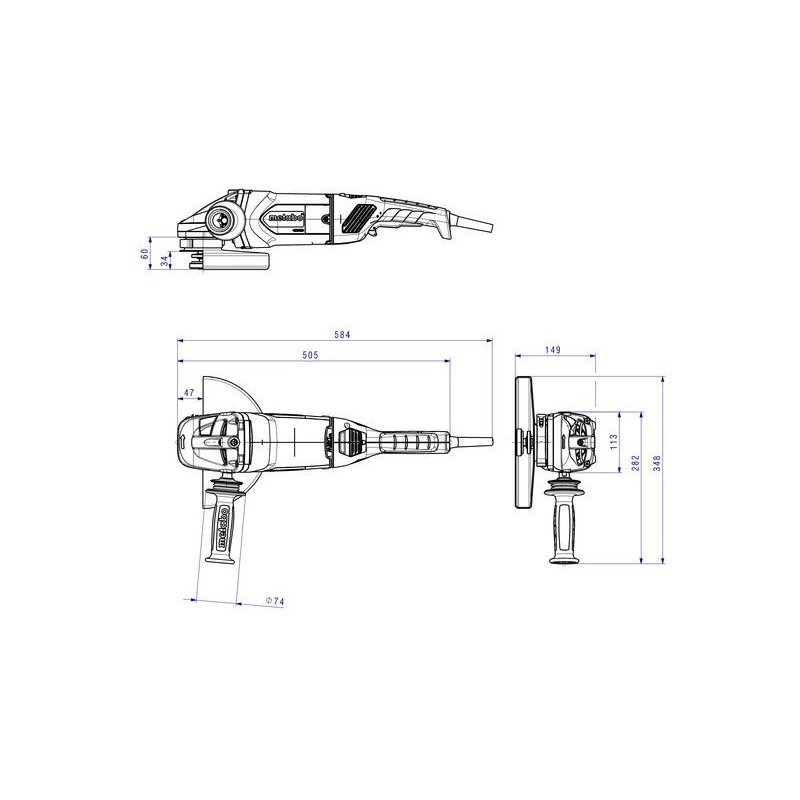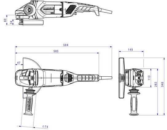 - Elektroniczna funkcja wyłączenia silnika redukuje zjawisko odrzutu w przypadku zablokowania tarczy, zapewniając bezpieczeństwo użytkownikowi