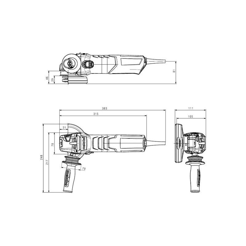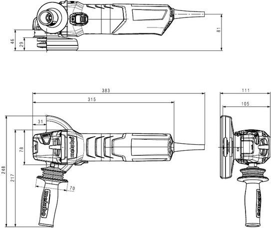 - Mechaniczne sprzęgło przeciążeniowe Metabo S-automatic: w przypadku zablokowania tarczy minimalizuje zjawisko odrzutu do najniższego poziomu na rynku, zapewniając maksymalną ochronę użytkownika możliwość szybkiego wznowienia pracy