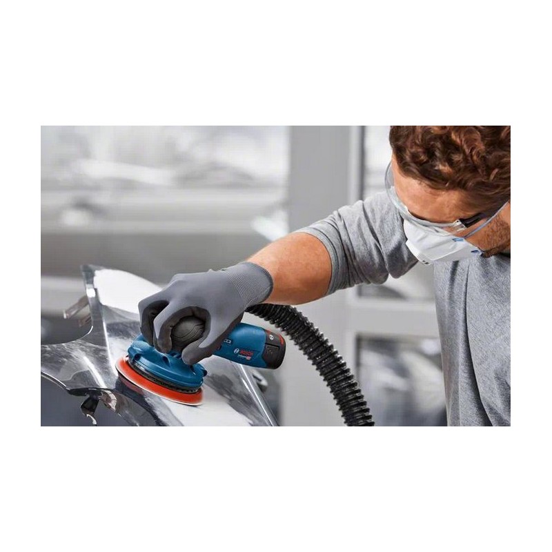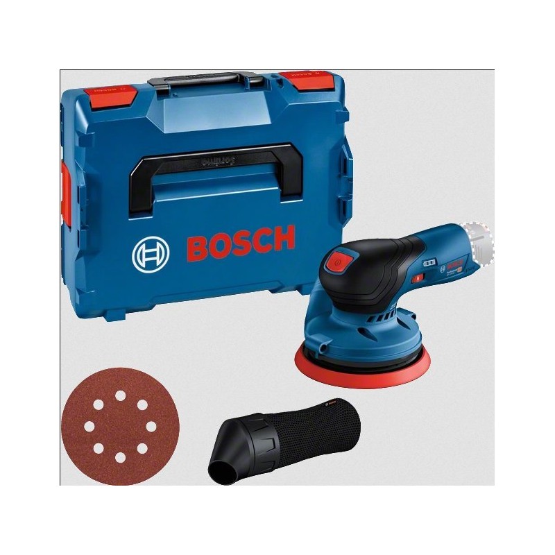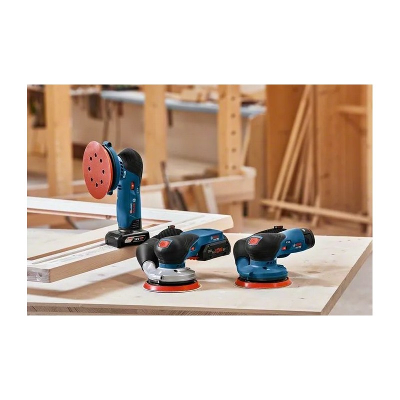 Bosch GEX 12V-125 Professional. Typ szlifierki: Szlifierka tarczowa, Mocowanie środków ściernych: Rzep, Kolor produktu: Czarny, Niebieski, Czerwony. Prędkość biegu jałowego (min): 6000 RPM, Prędkość biegu jałowego (max): 10000 RPM, Częstotliwość oscylacji na biegu jałowym (min.): 12000 OPM. Źródło zasilania: Bateria, Napięcie baterii: 12 V. Szerokość produktu: 153 mm, Głębokość produktu: 194 mm, Wysokość produktu: 108 mm