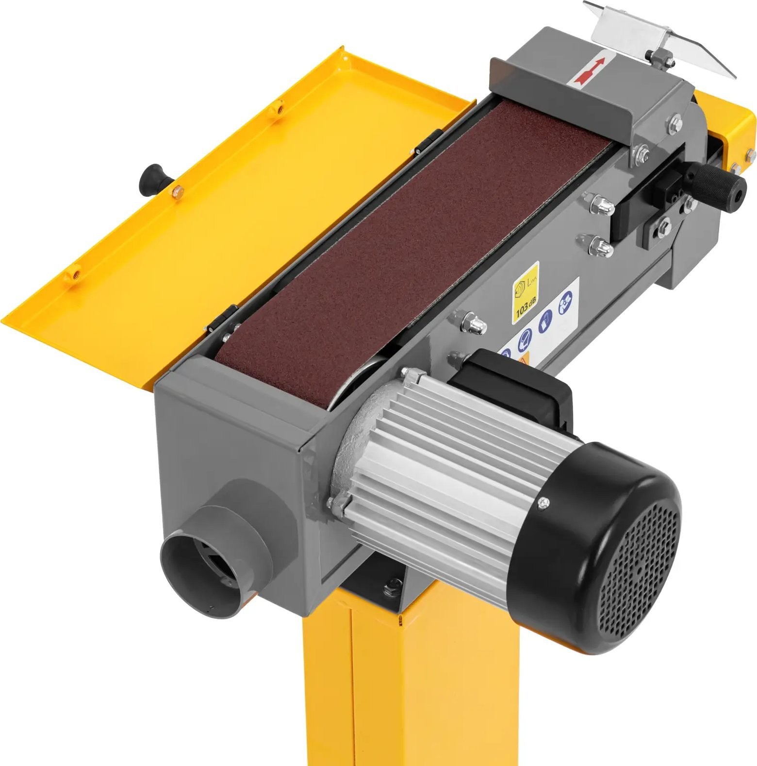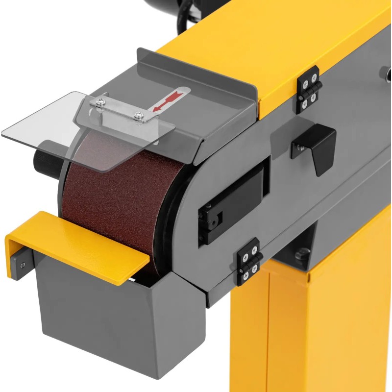 - - Stołowa szlifierka pasowa z taśmą 100 x 1220 mm i uchylną pokrywą szybko i dokładnie obrobi nawet duże kawałki metalu,