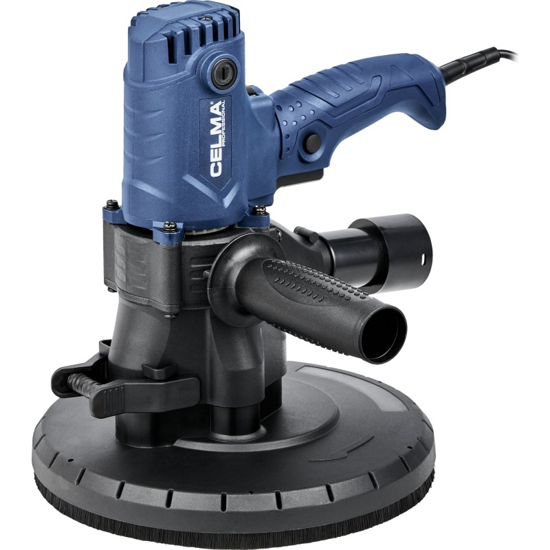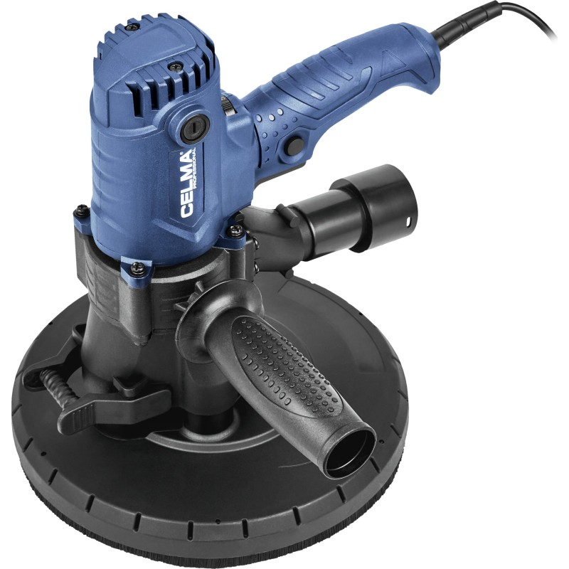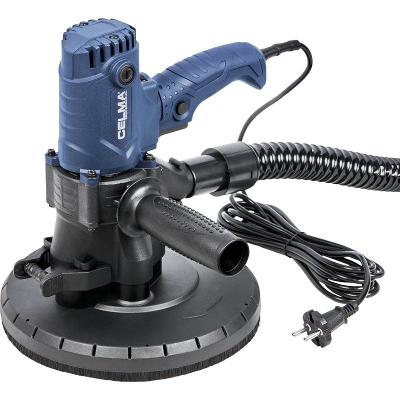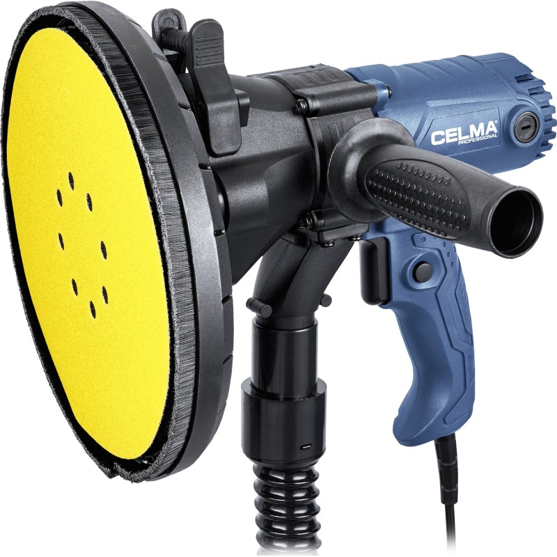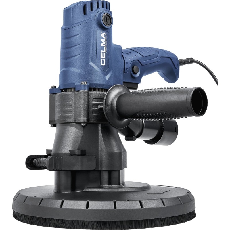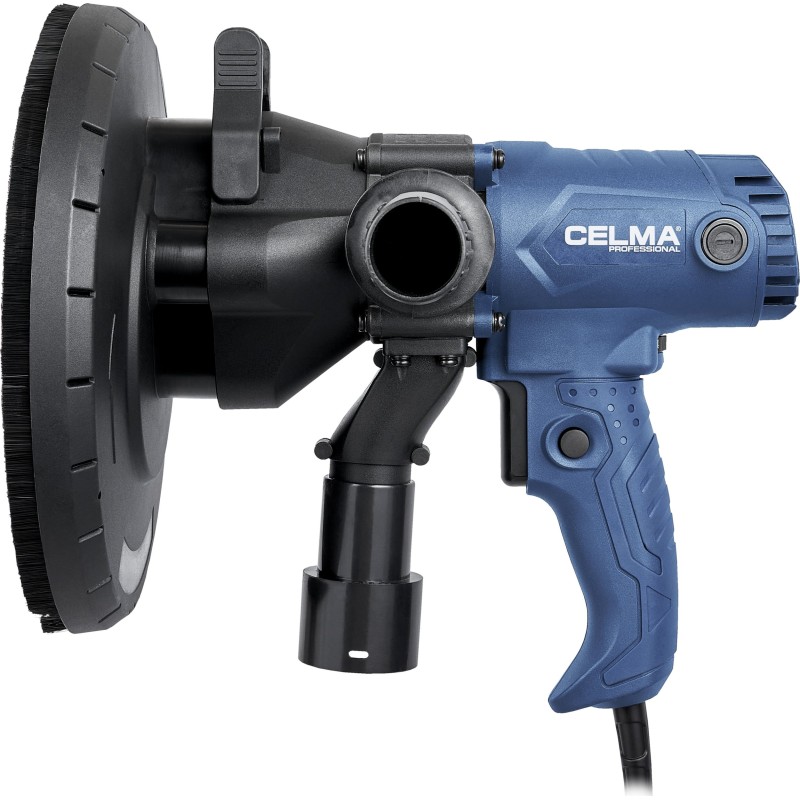 Szlifierka do gipsu CELMA Professional PRBs 225GEO przeznaczona jest do szlifowania ścian i sufitów z płyt kartonowo-gipsowych, tynków, gładzi gipsowych, wykańczania spoin pomiędzy płytami gipsowo-kartonowymi oraz usuwania niewielkich nierówności powierzchni tynków. Zapewnia wysoki komfort pracy, doskonałe wykończenie powierzchni oraz wyjątkową mobilność dzięki niskiej masie, dobremu wyważeniu konstrukcji, odpowiednio rozmieszczonym uchwytom oraz długiemu, 4-metrowemu przewodowi zasilającemu. Regulacja obrotów w szerokim zakresie pozwala na właściwe dostosowanie prędkości obrotowej do rodzaju wykonywanej pracy. Zintegrowany i wydajny system odpylający oraz dołączony do zestawu pojemny worek na pył umożliwiają pracę bez odkurzacza. W celu zwiększenia efektywności zbierania pyłu z obrabianych powierzchni zalecana jest praca z maszyną podłączoną do odkurzacza przemysłowego, co umożliwia dołączony do zestawu adapter.