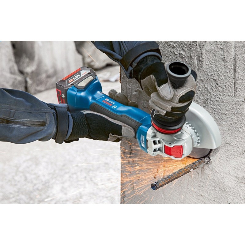 Elektryczna mała szlifierka kątowa GWX 18V-10 P Professional z systemem X-LOCK oferuje wyższą moc i lepszą kontrolę w klasie 18 V. Dzięki technologii silników bezszczotkowych model zapewnia moc porównywalną do mocy szlifierki sieciowej z silnikiem 1000 W. Model jest wyposażony w beznarzędziowy system X-LOCK, który umożliwia szybką i komfortową wymianę osprzętu. Ponadto oferuje wyłącznik czuwakowy „PROtection switch”, funkcje Drop Control i KickBack Control oraz hamulec X-Brake, które zapewniają maksymalny standard ochrony użytkownika i komfortu pracy.