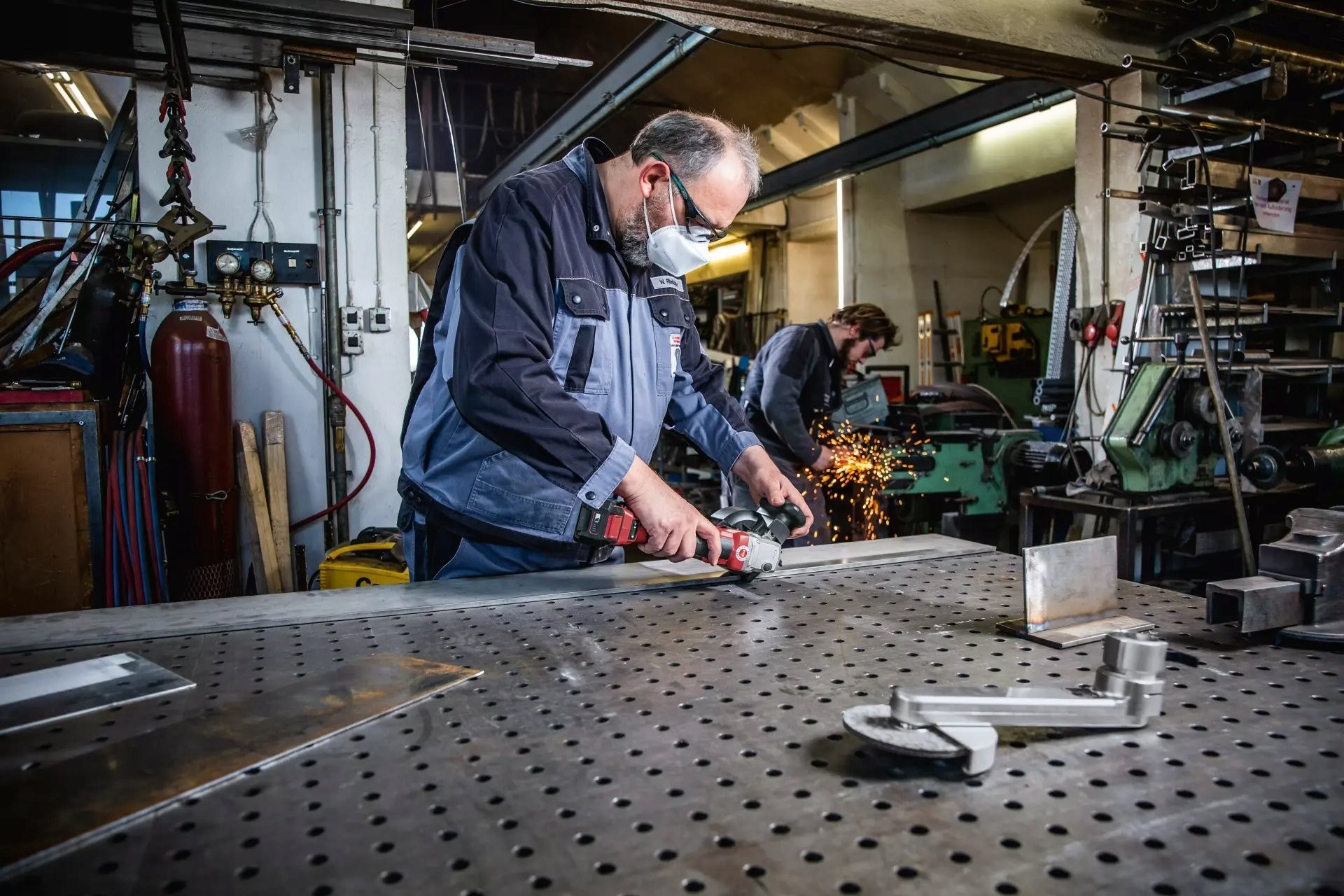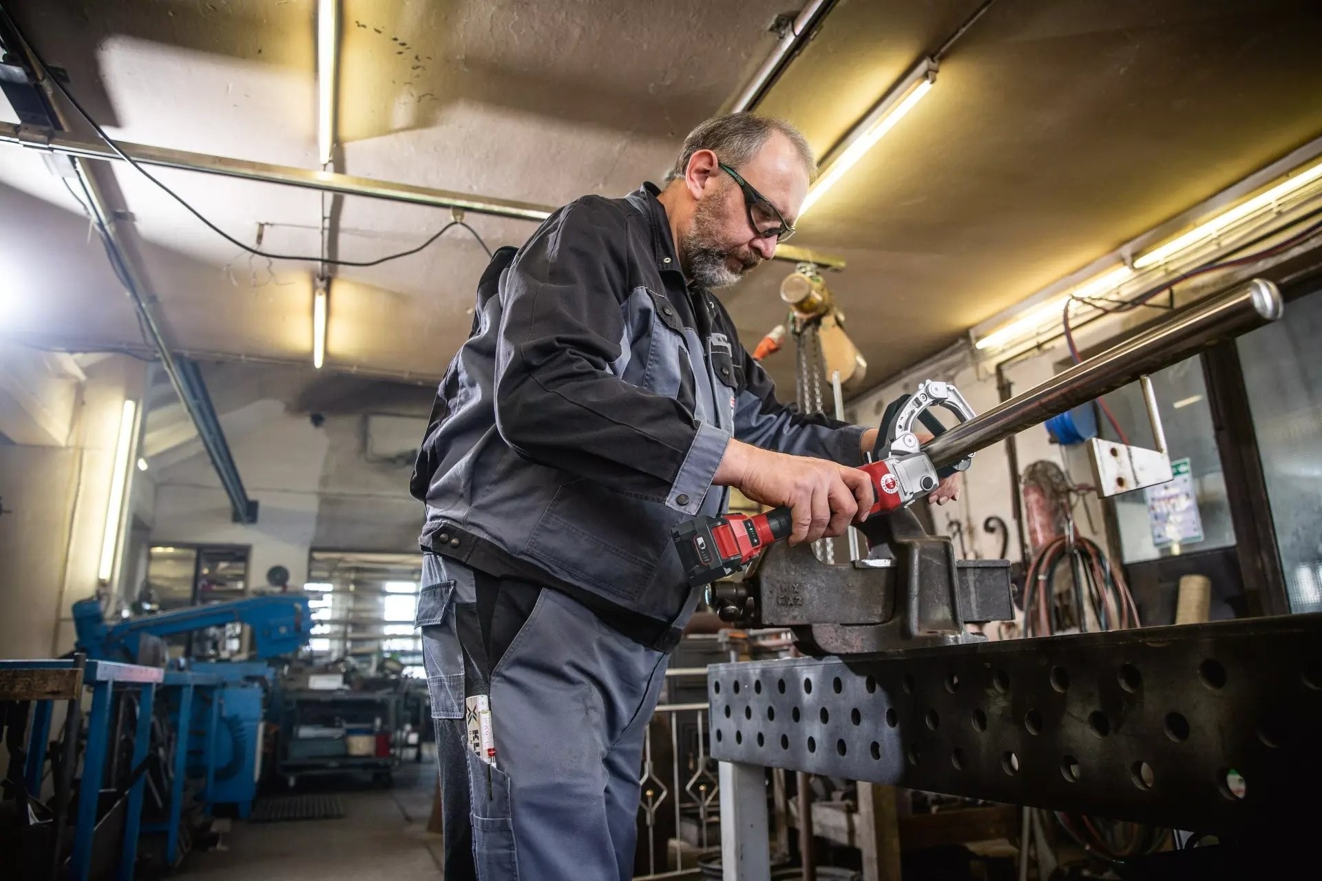 ✴️ Unikalne mocowanie narzędziowe z szybkozłączką do łatwej wymiany przystawek do szlifowania i satynowania rur, pilnikiem taśmowym lub szlifierką do uszczelniaczy pachwinowych