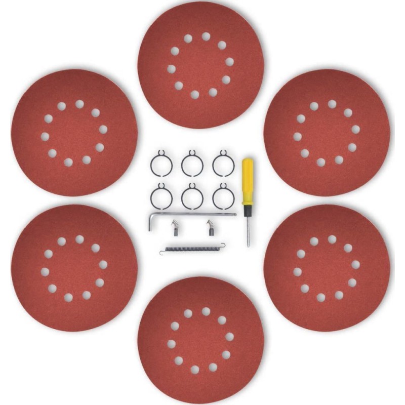 - 6 x tarcza szlifierska (ziarnistość: 80, 100, 120, 150, 180, 240)