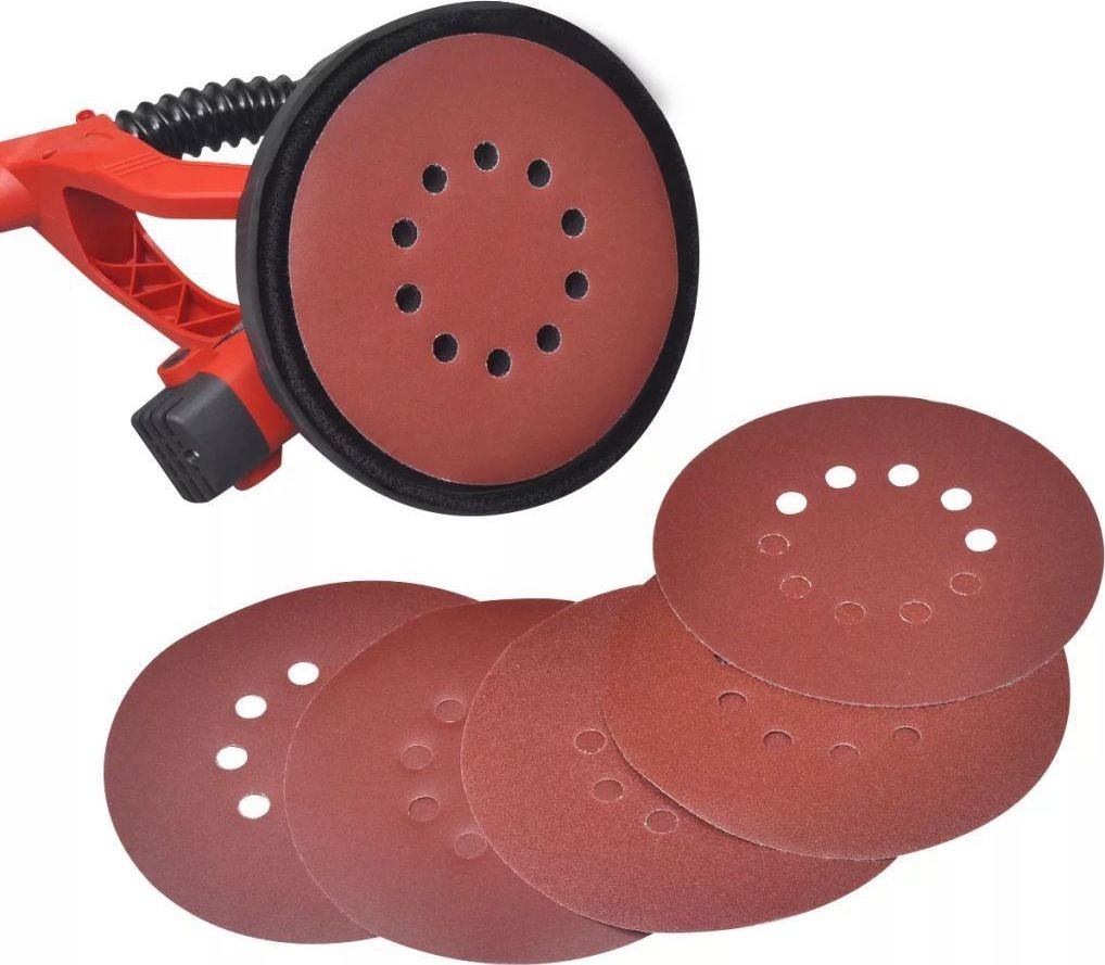 Szlifierka do płyt gipsowo-kartonowych obejmuje elastyczny wąż do odsysania pyłu, który rozciąga się aż do 4 metrów by niezawodnie zbierać generowane zanieczyszczenia i utrzymać czystość w miejscu pracy. W komplecie znajduje się 6 tarcz papierowych (80, 100, 120, 150, 180, 240) o grubym i drobnym ziarnie. Dostawa obejmuje również 6 x zacisk, 1 x wkrętak, 1 x klucz imbusowy, 2 x szczotka węglowa i 1 x sprężyna.