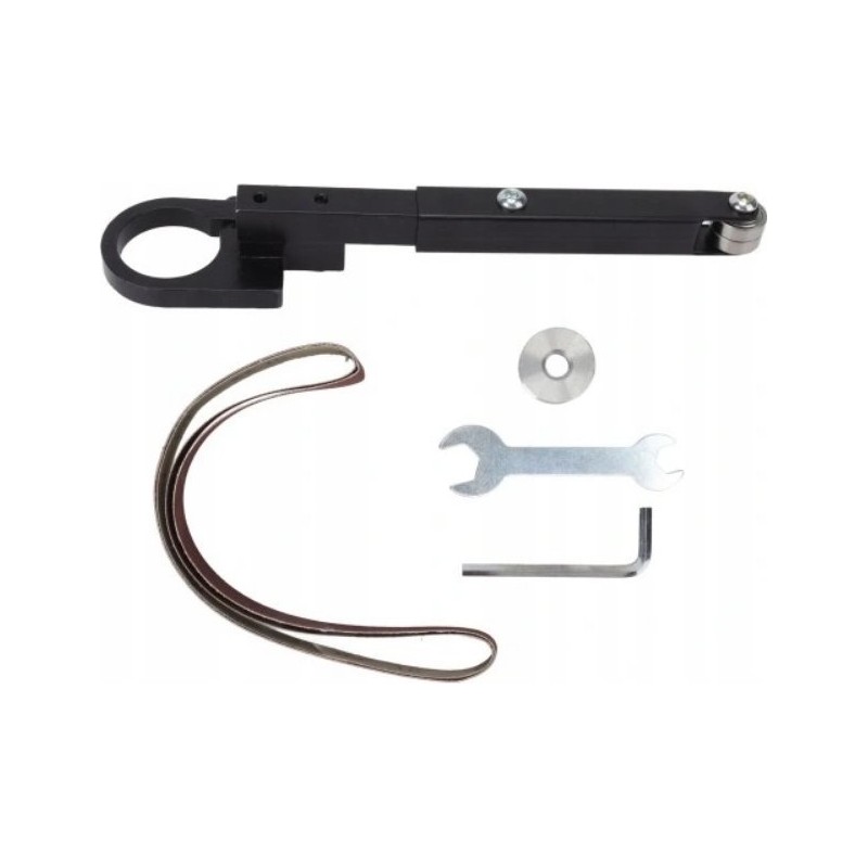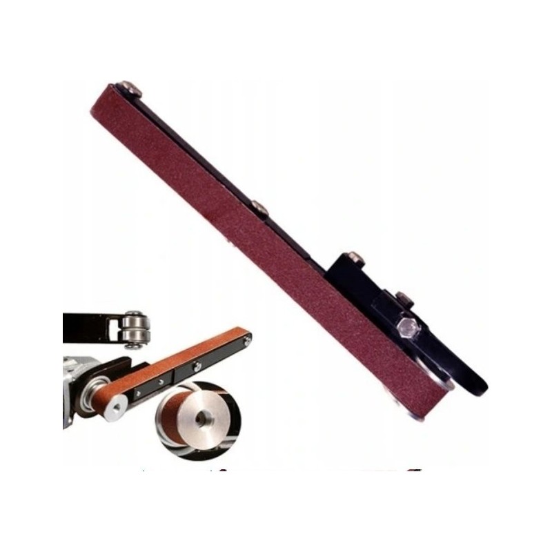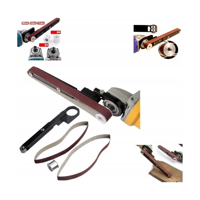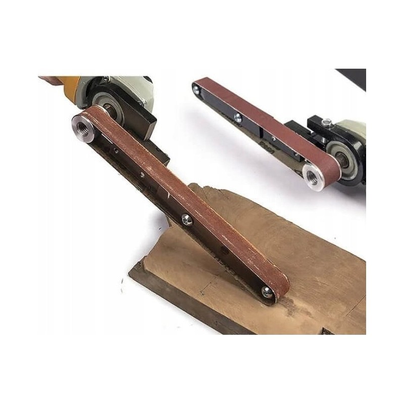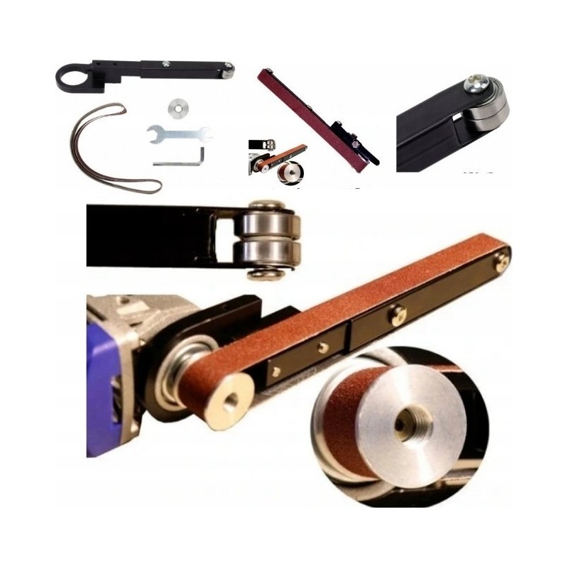 To narzędzie służy do modyfikacji szlifierki kątowej na maszynę z taśmą piaskową, która jest już w użyciu. Może to pomóc zaoszczędzić czas i pieniądze. Zapraszamy do wypróbowania i przekonania się samemu.