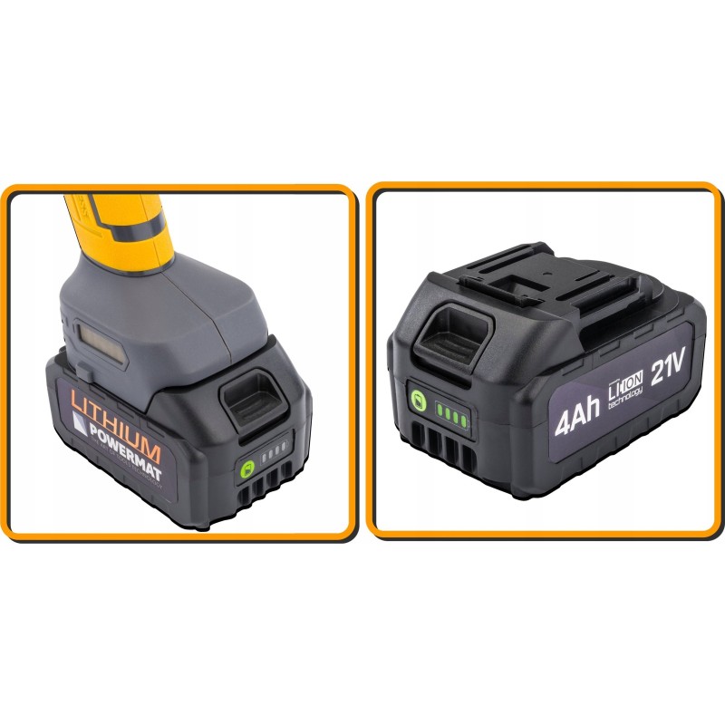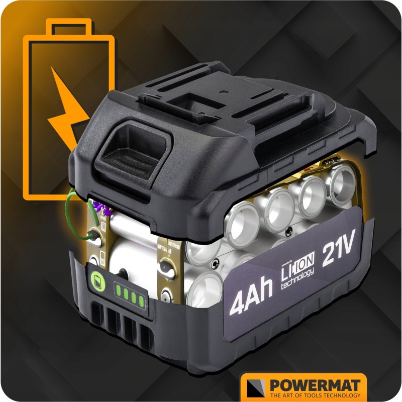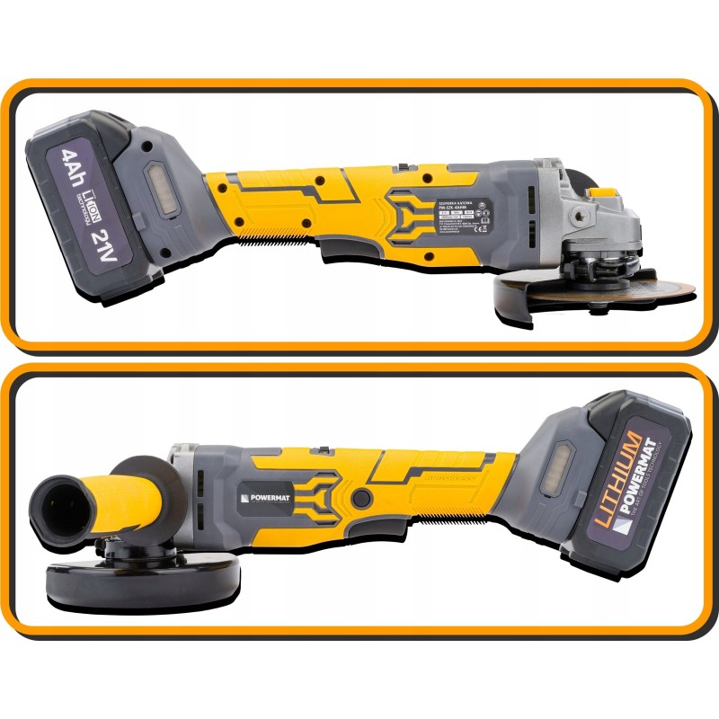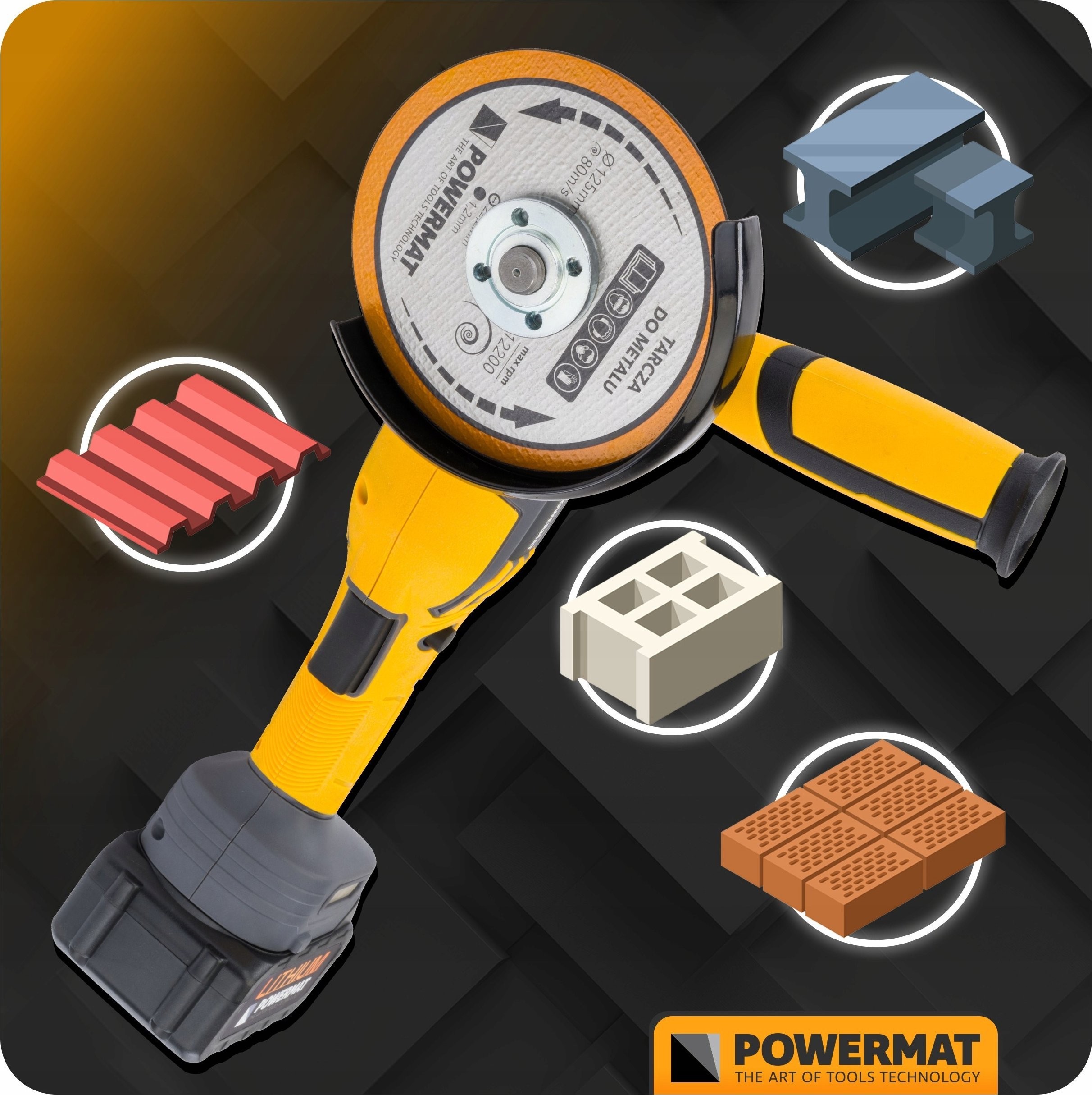 Zasilanie akumulatorowe szlifierki kątowej Powermat zapewnia pełną mobilność, co umożliwia wygodne wykonywanie zadań w różnych miejscach. Nie musisz się martwić o dostęp do gniazdka elektrycznego, co czyni to narzędzie niezwykle praktycznym.