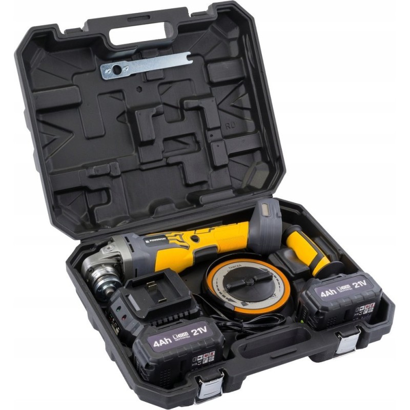 SZLIFIERKA KĄTOWA AKUMULATOROWA BEZSZCZOTKOWA 2x AKU 4Ah – Wydajne narzędzie do cięcia i szlifowania