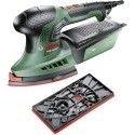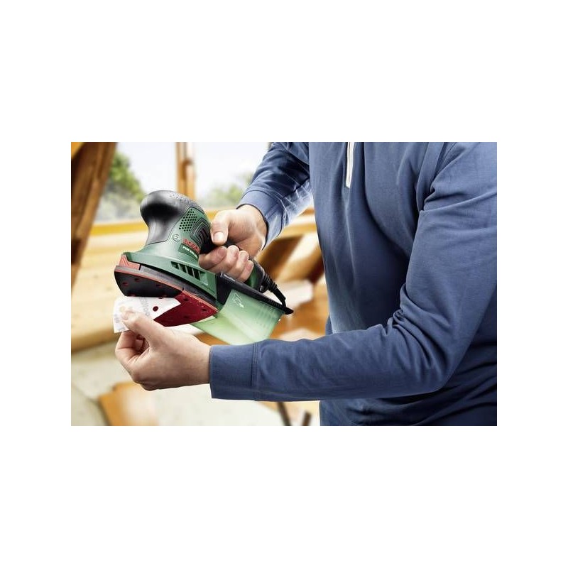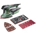 - Wszechstronne zastosowanie dzięki wymiennym płytom szlifierskim: dodatkowo w zestawie prostokątna płyta szlifierska do szlifowania dużych powierzchni
