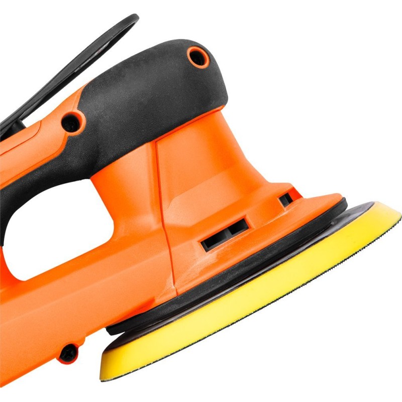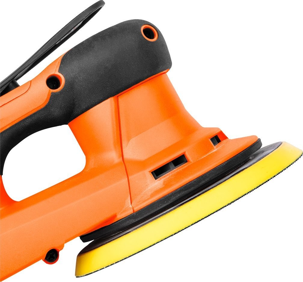 System mimośrodowy o skoku 5 mm zapewnia znakomitą jakość szlifowania, eliminując ryzyko powstawania rys i nierówności na obrabianej powierzchni. Ergonomiczny kształt narzędzia oraz jego niska waga sprawiają, że praca z nim jest komfortowa i nie męczy rąk.