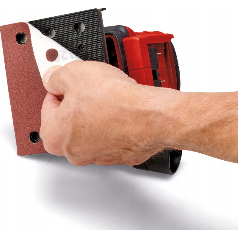 Dzięki mocowaniu na rzepy papier ścierny można wymienić w mgnieniu oka i zamocować go bez zagnieceń.