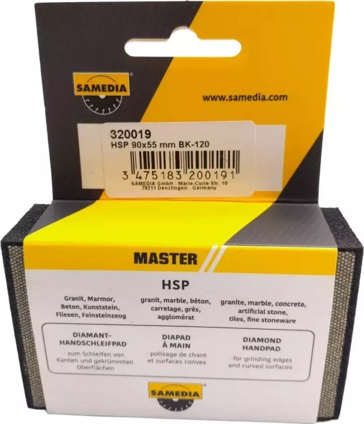 SpecyfikacjaRęczny pad szlifierski HSP o wymiarach 90x55 mm to idealne rozwiązanie dla profesjonalnych glazurników. Przeznaczony do szlifowania i polerowania krawędzi oraz zakrzywionych powierzchni.