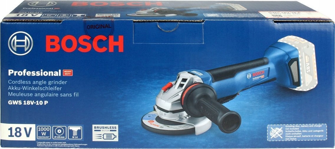 Szlifierka Bosch cordless angle grinder GWS 18V-10 P Professional solo, 125mm (blue/black, without battery and charger)