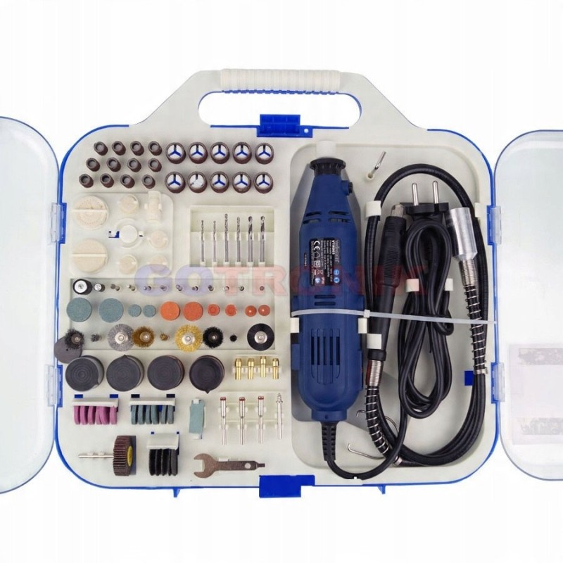 Miniwiertarka Velleman VTHD05 to doskonałe rozwiązanie dla elektroników, modelarzy oraz hobbystów. Dzięki swojej wszechstronności i precyzji, to narzędzie stanie się niezastąpionym wsparciem w każdym domowym warsztacie. Zestaw zawiera aż 162 akcesoria, co umożliwia realizację różnorodnych projektów i prac.
