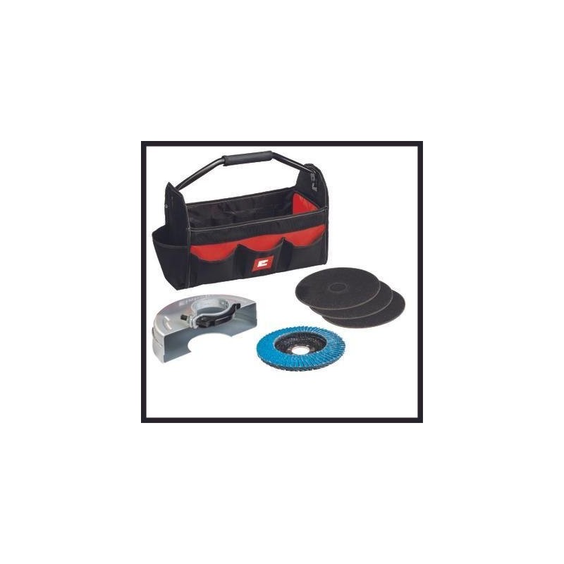 Aby móc od razu rozpocząć pracę, szlifierka kątowa TC-AG 125/850 Kit Einhell dostarczana jest wraz z obszernym zestaw akcesoriów. Do szlifierki dołączona jest praktyczna torba Einhell Bag 45/22 do przechowywania i transportu. W skład akcesoriów wchodzi również osłona tarczy tnącej, trzy tarcze tnące (125 x 1,2 mm), tarcza lamelkowa (125 mm) zwana także listkową, oraz uchwyt.