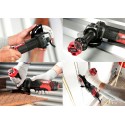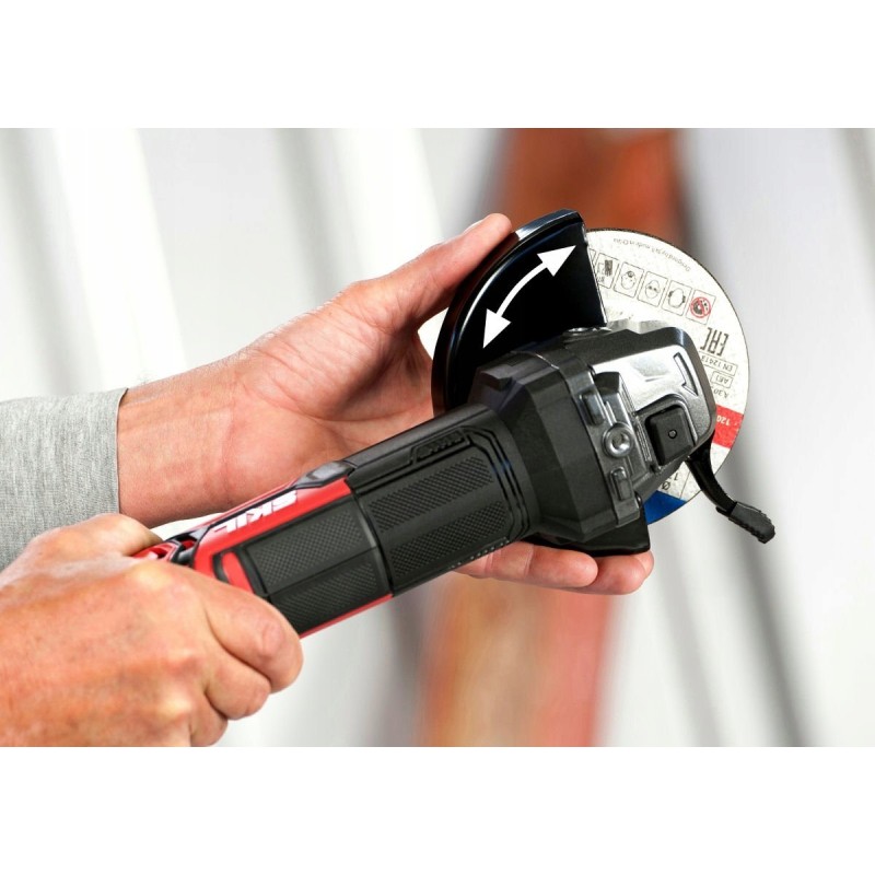 Osłona z systemem CLIC umożliwia łatwe i bezproblemowe ustawienie osłony, chroniącą przed pyłem i iskrami. Dodatkowo, wbudowany schowek w bocznej rękojeści ułatwia dostęp do klucza montażowego do wymiany akcesoriów.
